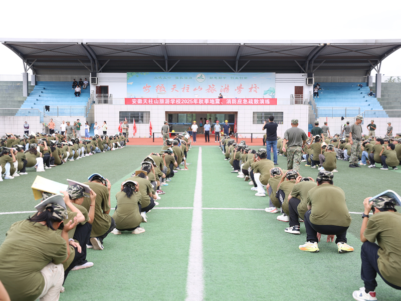 为切实加强学校安全管理,帮助师生了解防震与消防应急避险知识,熟悉防震减灾紧急疏散的程序和路线,掌握地震、火灾等灾害来临时最有效的逃生方法,提升师生应急反应和自救互救的能力。9月28日下午,安徽天柱山旅游学校成功举行了2025级新生地震与消防应急避险和疏散演练。