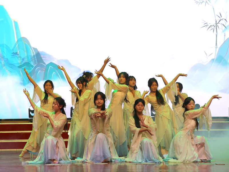 汇演现场气氛热烈,节目精彩纷呈。晚会在活力四射的开场舞《新年快乐》中拉开帷幕,点燃了喜迎新年的欢腾气氛;《如愿》的深情歌声在抗日战争胜利80周年之际穿越时空,致敬先辈,抒发青春赤诚;民族舞蹈《石榴花开》优美诠释了民族团结,是我校铸牢中华民族共同体意识教育的鲜活缩影;歌曲《星辰大海》《母亲》诉说着远大梦想与亲情感恩;黄梅戏《谁料皇榜中状元》展现了学校深耕传统文化、提升美育素养的成果,也寄寓了对全体学子前程似锦的美好祝愿;而《广东爱情故事》《九儿》《上春山》《至少还有你》《我只在乎你》《不要怕》等节目衔接自然,旋律优美,融现代气息与情感共鸣于一体;晚会在《吉祥》《越来越好》的欢腾祝福中走向高潮;最后,在全体合唱《难忘今宵》的深情旋律中圆满落幕。