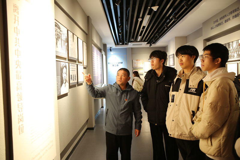 师生们在安徽天柱山旅游学校党总支书记的带领下,首先步入陈独秀纪念馆进行参观学习。馆内陈列着大量珍贵的历史文物、图片资料和生动的场景复原,系统展现了陈独秀先生的生平事迹、思想发展及其所处的时代背景。从《新青年》的创刊到马克思主义的传播,从中共一大的筹备到早期党组织的活动。同学们驻足于一件件展品前,认真观看,仔细聆听,不时驻足沉思,先驱者们追求真理、不畏艰难、勇于担当的精神风貌,深深感染了在场的每一位同学。